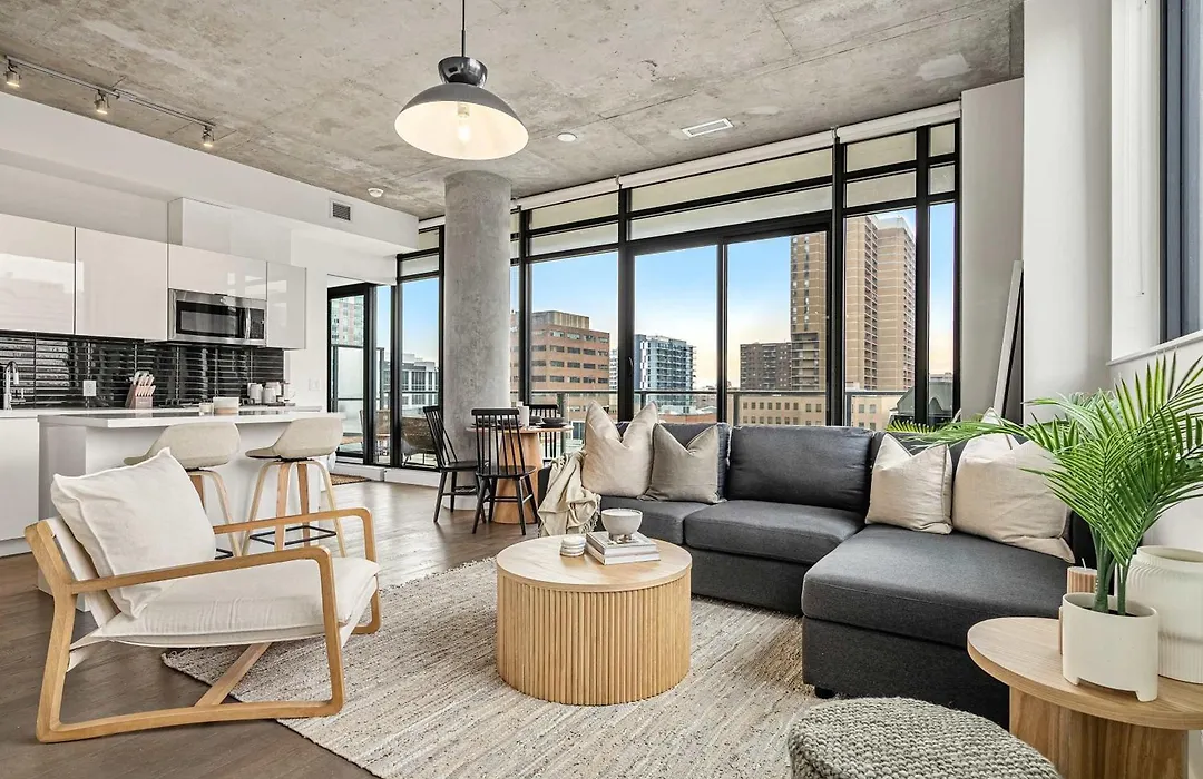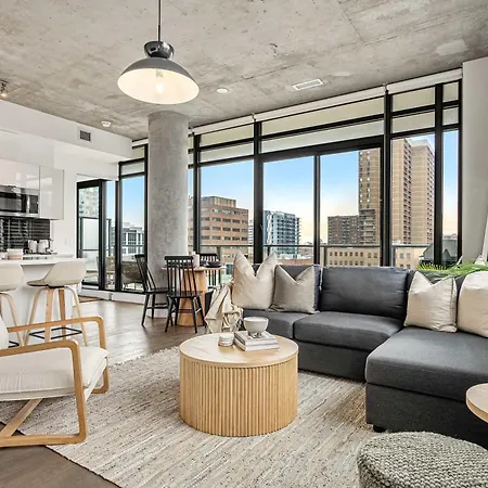 The Domain Skyline View King Beds Pool Gym Apartment comes with a patio and a living room and looks out onto the city. Visitors will enjoy the comfort of a bathroom with hair dryers in this accommodation.